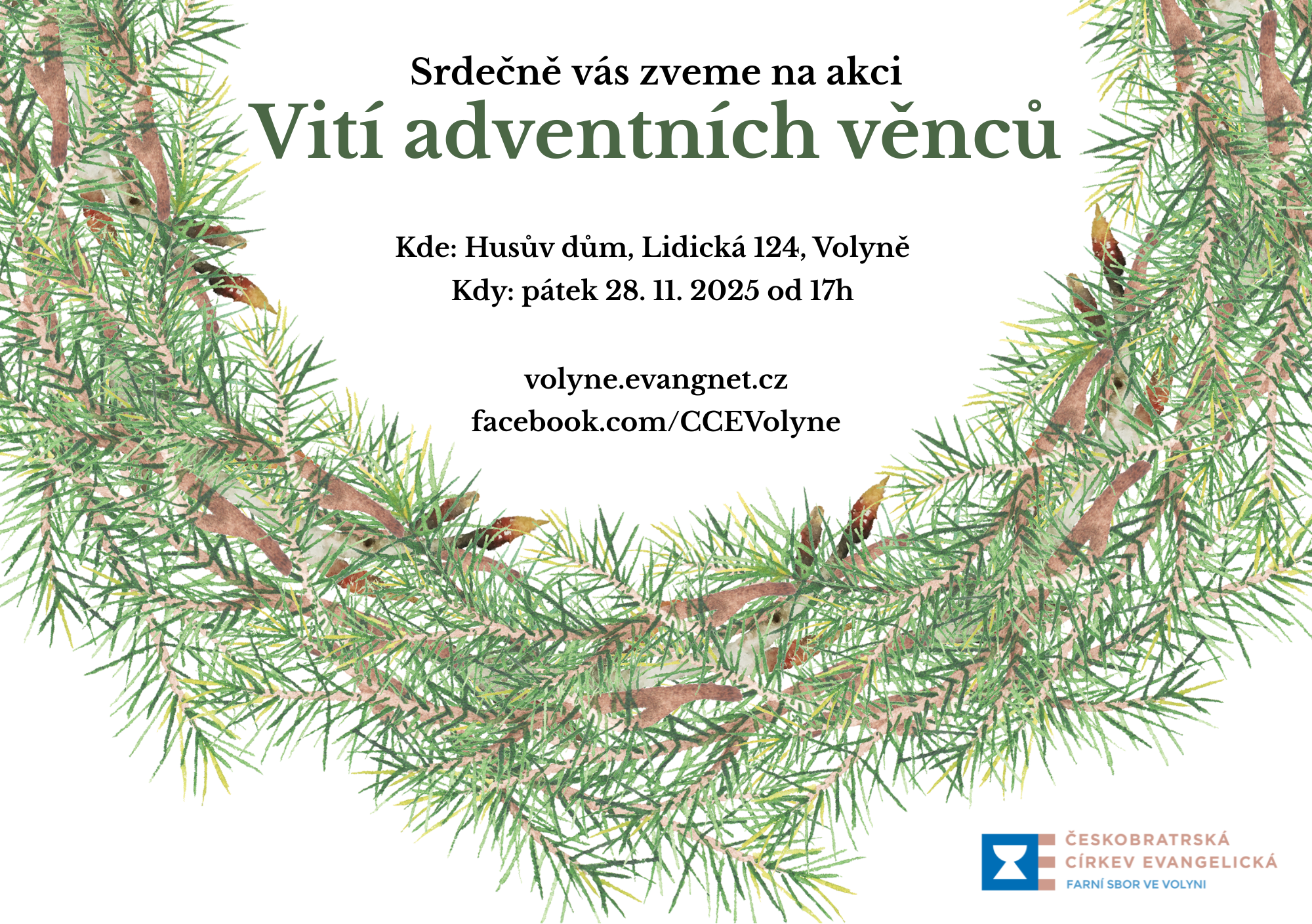 V neděli 23. 11. 2025 se konají společné bohoslužby v Písku. Bohoslužby ve Volyni jsou zrušené.